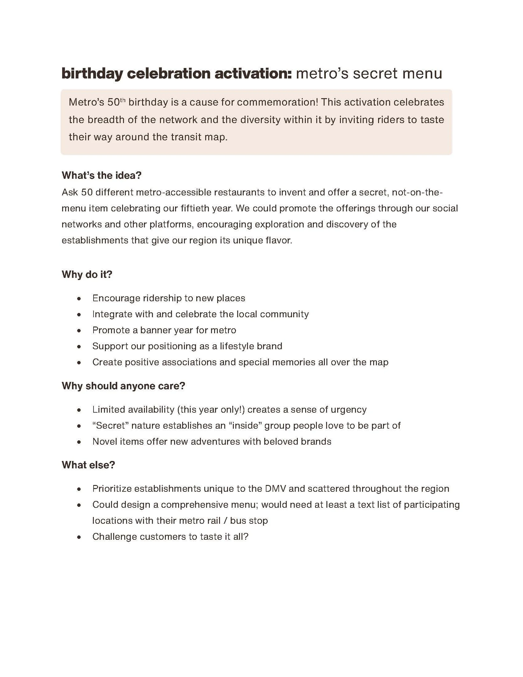 I pitched an activation to celebrate the breadth of the Metro transit network and the diversity within it while encouraging ridership and regional exploration.